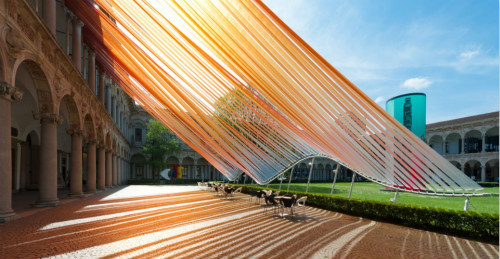 AD創(chuàng)作的公共空間ETFE膜材作品“無際”在2016米蘭設(shè)計周中展出。作品位于米蘭大學Cortile d’Onore的中央庭院,在“打開邊界”的展覽命題下,嘗試捕捉風和光線對環(huán)境造成的變化,創(chuàng)造出溫暖、靈動、自由的新空間,帶來開放、交流、對話的氛圍,提出新的思路。