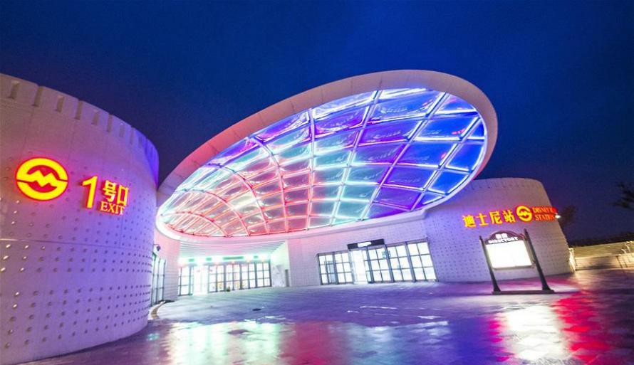 上海地鐵迪士尼站出入口“氣膜結(jié)構(gòu)”雨棚渲染夢幻之旅