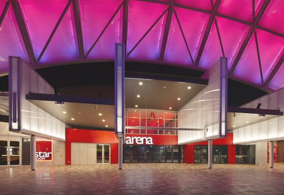 澳大利亞阿德萊德娛樂中心重建項目由DesignInc設(shè)計,娛樂中心入口由ETFE膜結(jié)構(gòu)圓頂和動感LED照明系統(tǒng)構(gòu)成,ETFE圓頂展現(xiàn)了半透明、移動性、氣氛轉(zhuǎn)變及時尚表演印象的空間概念,該圓頂在阿德萊德景觀建筑圈擁有高度識別性。