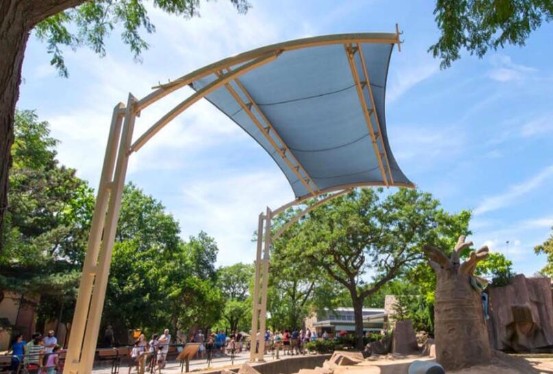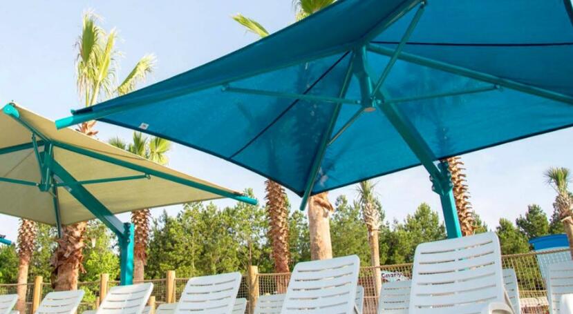 防水質(zhì)地的面料、防紫外線的高密度聚四氟乙烯(PTFE)、鋼骨架、不銹鋼元件及配件都能很好地實(shí)現(xiàn)以上效果。遮陽(yáng)棚的顏色選擇也會(huì)影響對(duì)有害紫外線的防護(hù)水平。
