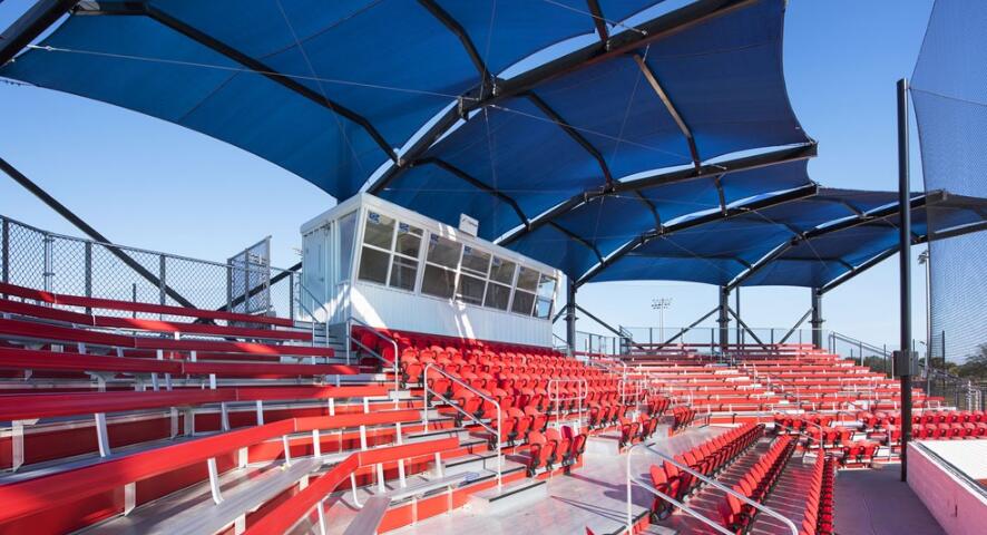 另一方面,懸臂式遮陽(yáng)結(jié)構(gòu)通過(guò)兩個(gè)支撐點(diǎn)被抬升至空間上方,以避免影響空間下方的人群活動(dòng)。這種設(shè)計(jì)在人行道、公交車(chē)站臺(tái)座位、露天看臺(tái)和停車(chē)場(chǎng)都有很好的效果。