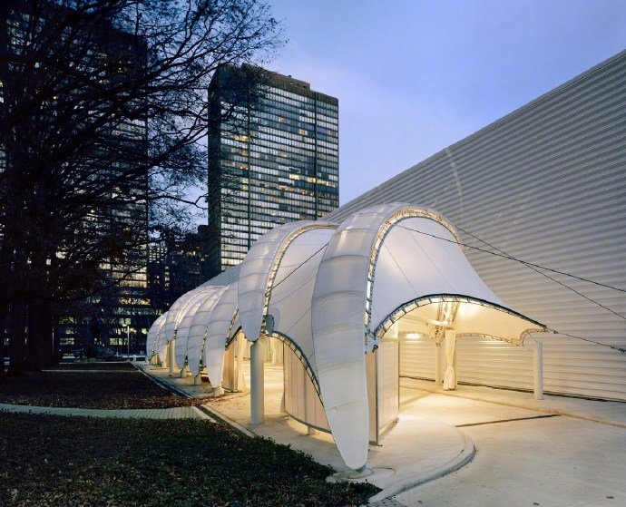 以膜構(gòu)成的空間有無窮無盡的可能和魅力。綜合考慮功能與形態(tài)、造型與力、材料、系統(tǒng)、節(jié)點(diǎn)、織物裁剪、施工方法等等,膜結(jié)構(gòu)設(shè)計(jì)也是一種妙趣橫生的探索過程。