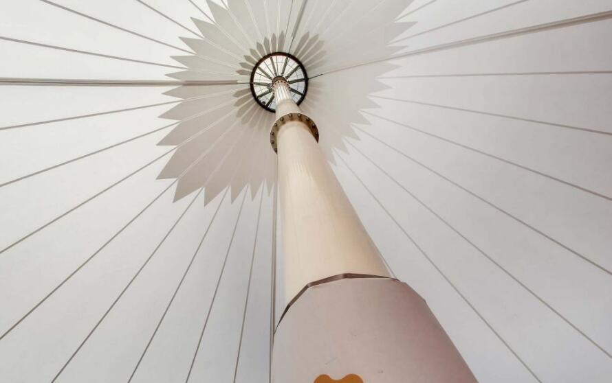 這是一個(gè)超450平米的兒童游樂(lè)場(chǎng),于上方覆蓋一把膜結(jié)構(gòu)“大傘",采用白色PVC膜材,大傘中央以一根鋼管支撐,營(yíng)造了一個(gè)明亮開(kāi)闊無(wú)遮擋的空間。