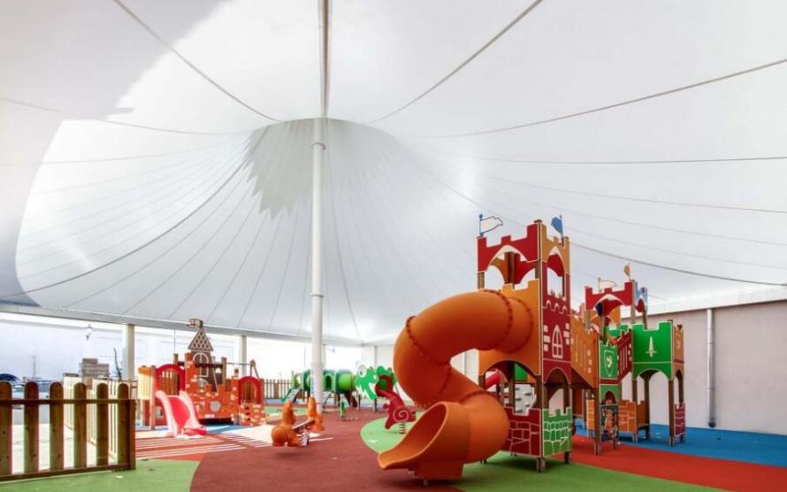 把膜結(jié)構(gòu)設(shè)計(jì)理念融入兒童游樂(lè)場(chǎng)建設(shè)中是一個(gè)很棒的想法,而且工程案例也越來(lái)越多。膜結(jié)構(gòu)造型豐富優(yōu)美,輕巧靈動(dòng),不論是小體量的遮陽(yáng)傘,還是大跨度的穹頂,都能根據(jù)環(huán)境設(shè)計(jì)出與之相稱(chēng)的造型。甚至包括一些童趣造型,比如動(dòng)物、花朵、飛鳥(niǎo)、花傘等等......