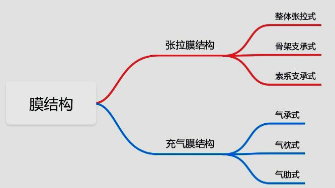 因此本文從膜面預(yù)張力的施加方式(這決定了膜結(jié)構(gòu)的節(jié)點形式和施工方法),將膜結(jié)構(gòu)的分類如下圖表示: