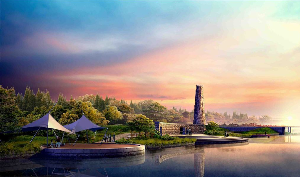 由人工建筑、雕塑小品、濱水綠色走廊等組成