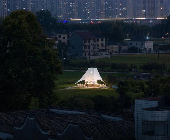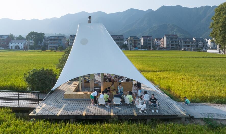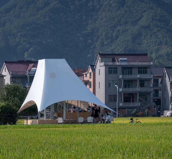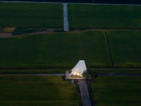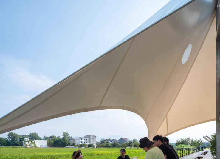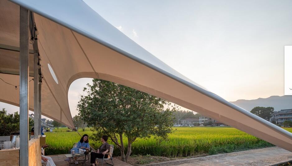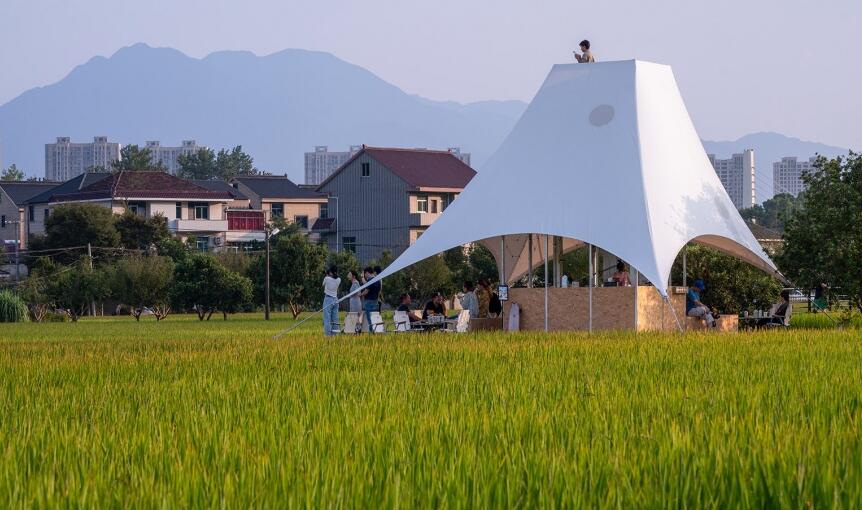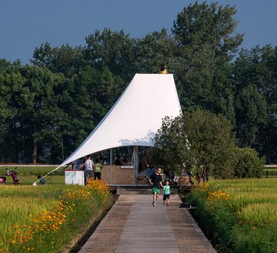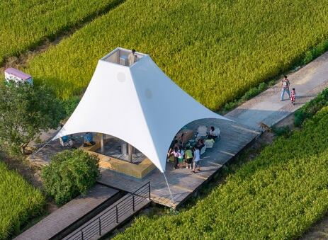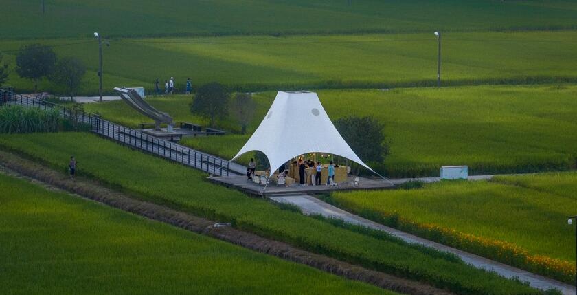 如斯美好!稻田中的張拉膜“塔亭”