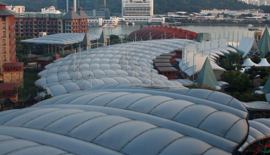 隨著ETFE(Ethylene Tetra Fluro Ethylene)膜材的成功研發(fā),憑借其輕質(zhì)、透光、隔熱、抗腐、耐候、自潔等良好的性能而被廣泛應(yīng)用。ETFE膜材為非織物類膜材,相比織物類膜材其單張膜的抗拉強(qiáng)度較低,常采用氣枕的形式多張共同受力,并通過(guò)內(nèi)壓使其具有合適的剛度,由此產(chǎn)生的氣枕式膜結(jié)構(gòu)具有較好的力學(xué)性能和使用性能,逐漸得到廣泛的發(fā)展并具有良好的前景,ETFE氣枕式膜結(jié)構(gòu)應(yīng)用于大型商業(yè)建筑,體育場(chǎng)館,展廳等屋面,外立面或出入口。
