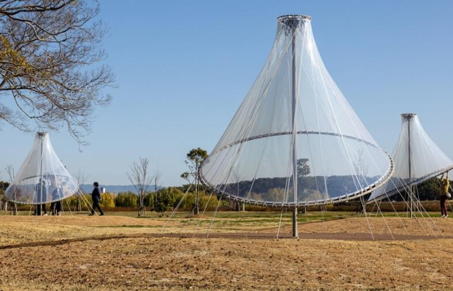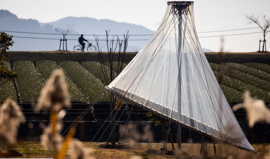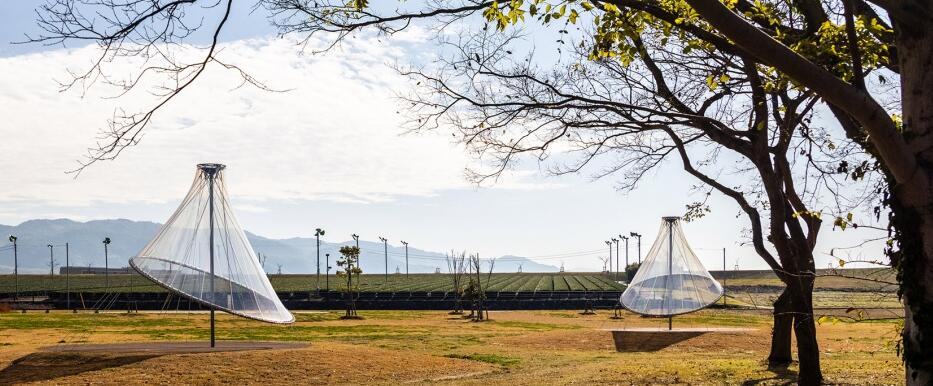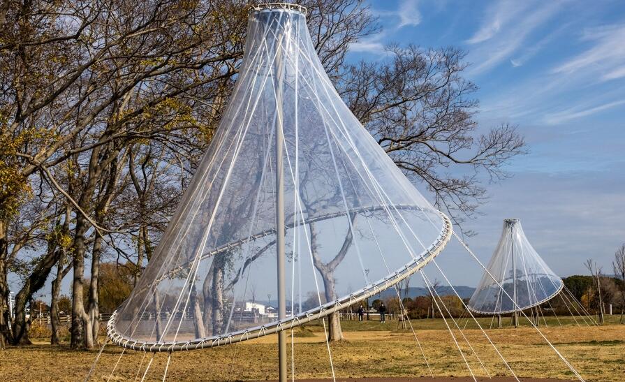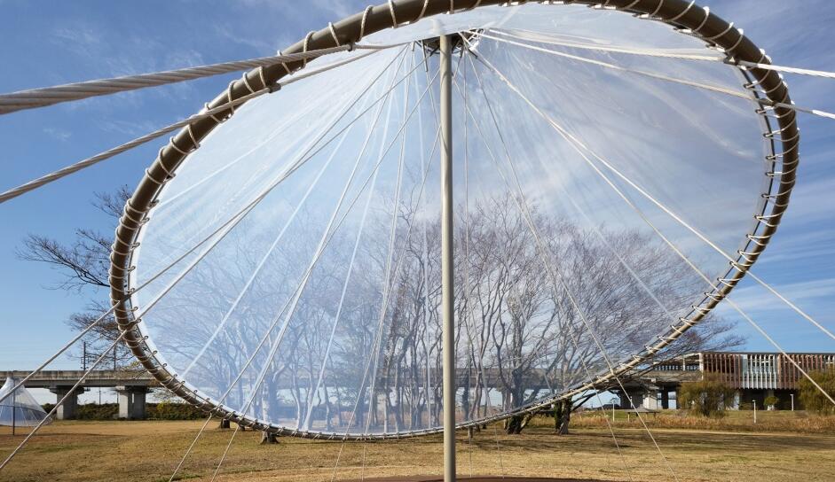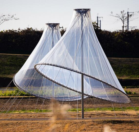 筑后廣域公園位于矢部川旁,是福岡縣面積最大的公園。隈研吾事務(wù)所在這座公園內(nèi)設(shè)計了一組輕盈透明的膜結(jié)構(gòu)裝置。