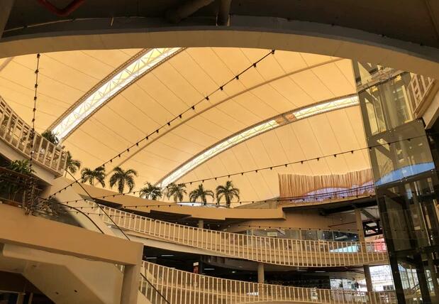當(dāng)考慮用膜結(jié)構(gòu)形式來建設(shè)商業(yè)中心屋頂,需要了解其特點和設(shè)計原則。膜結(jié)構(gòu)屋頂是一種利用膜材料建成的屋頂結(jié)構(gòu),它集輕盈、美觀、大跨度、高透光、時尚等特點。在設(shè)計膜結(jié)構(gòu)屋頂時,需要考慮建筑物的用途、氣候條件、結(jié)構(gòu)安全性和經(jīng)濟性等因素。