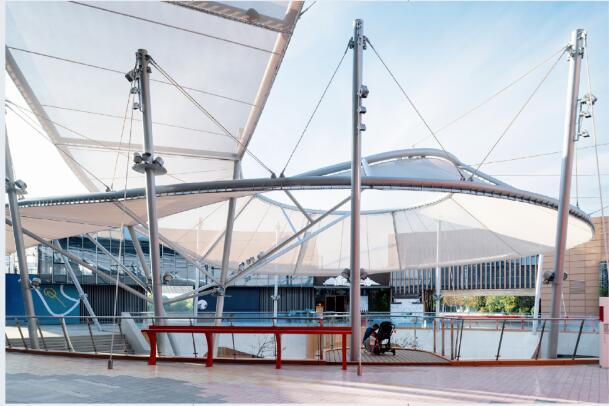 本項(xiàng)目通過(guò)膜結(jié)構(gòu)設(shè)計(jì),為下沉廣場(chǎng)提供了一個(gè)適配的覆蓋方案。在設(shè)計(jì)中充分考慮了安全、耐久、經(jīng)濟(jì)、環(huán)保等因素,具有良好的觀賞及美學(xué)效果。