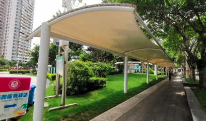 張拉膜連廊多用于交通樞紐、景區(qū)碼頭等場所,通過連續(xù)頂棚覆蓋,實現(xiàn)無風(fēng)雨換乘或通行。