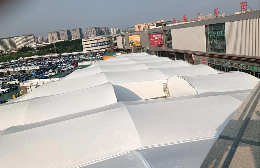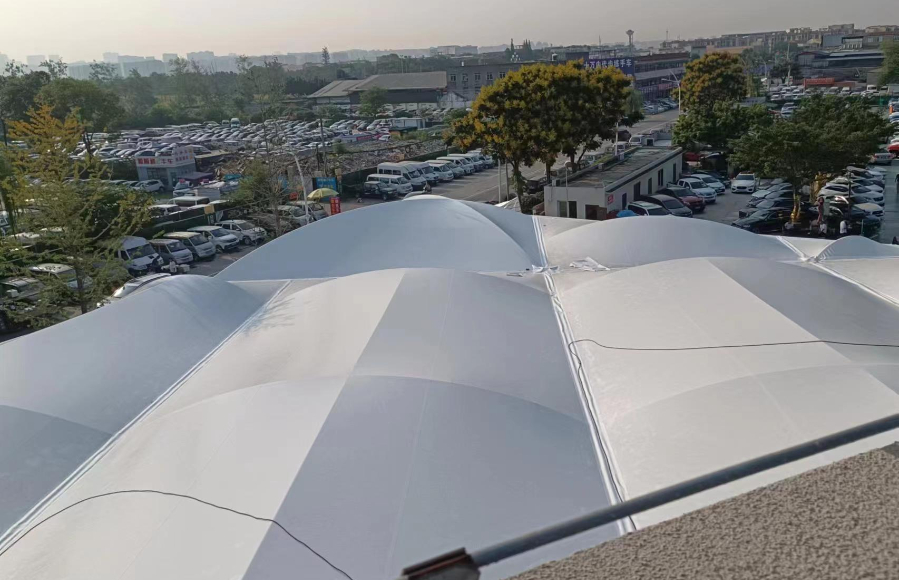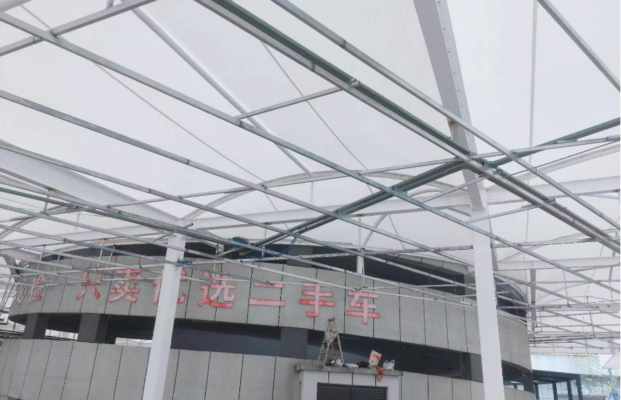 雙流二手車市場膜結(jié)構(gòu)工程施工進(jìn)展
