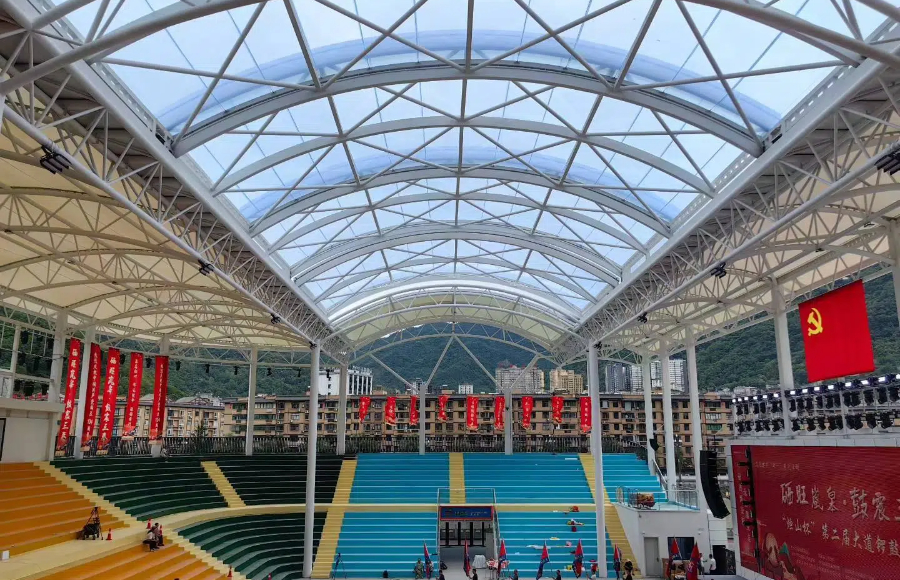 綿陽(yáng)育才中學(xué)膜結(jié)構(gòu)看臺(tái)工程進(jìn)展