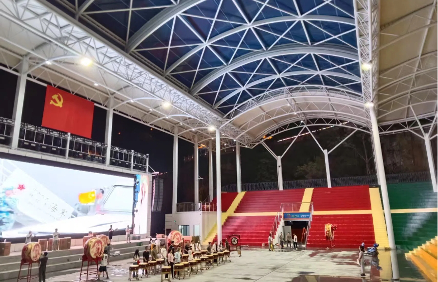 嵐皋村BA籃球場(chǎng)膜結(jié)構(gòu)屋頂工程進(jìn)展