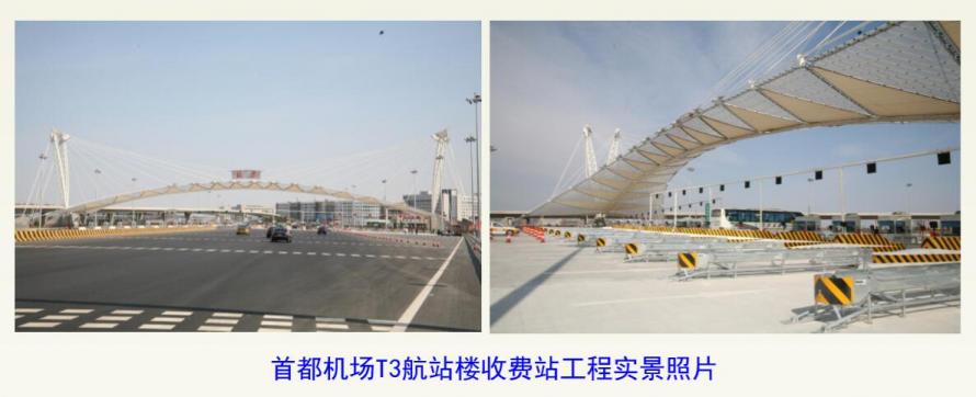首都機(jī)場T3航站樓南線收費(fèi)站( PTFE+ETFE,2008年竣工,4000m2 )