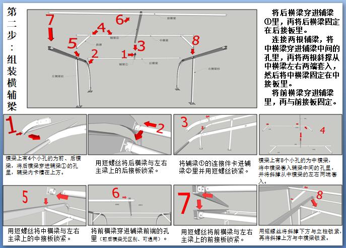 膜結(jié)構(gòu)停車棚安裝步驟說明如下: