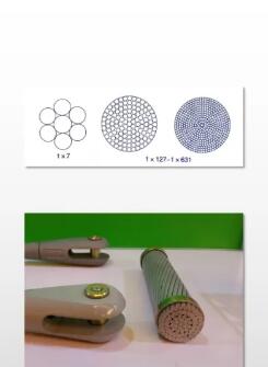 鋼絲束,捻距大、捻角小,因此鋼絲排列緊密、受力均勻,接觸應(yīng)力低,能夠充分發(fā)揮高強(qiáng)度鋼絲的性能,強(qiáng)度高、彈性模量大;但抗扭穩(wěn)定性差,需要現(xiàn)場捻制。
